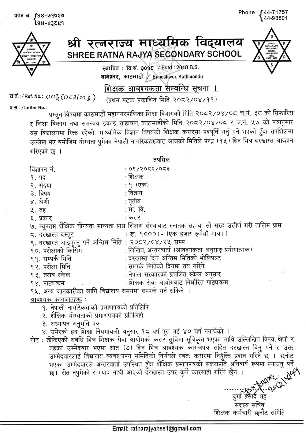 Shree Ratna Rajya Madhyamik Vidyalaya