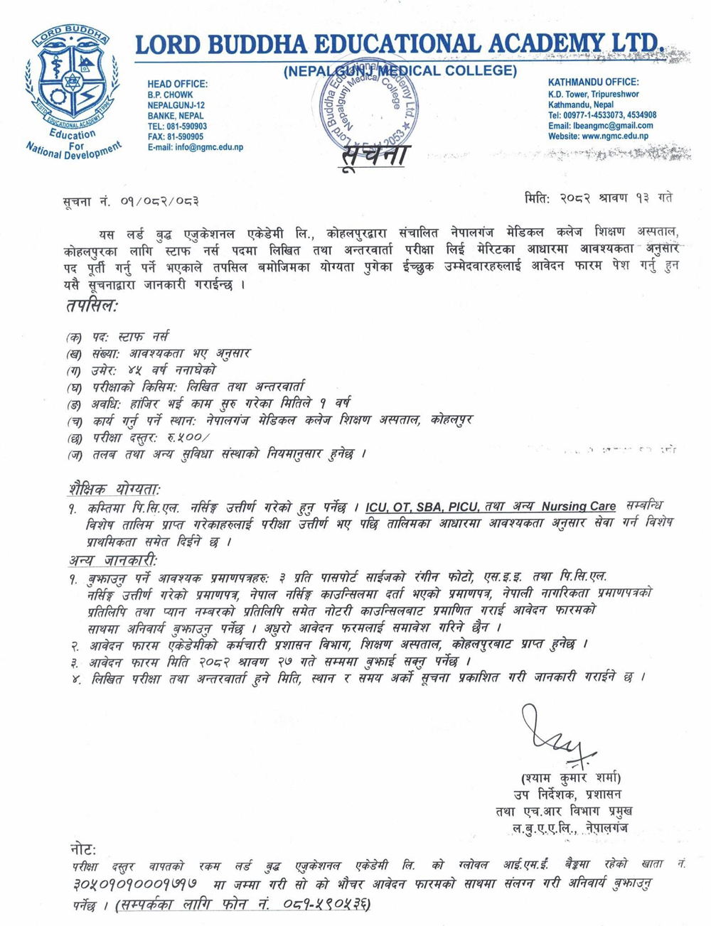 Position: Staff Nurse