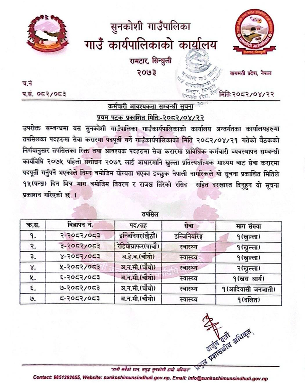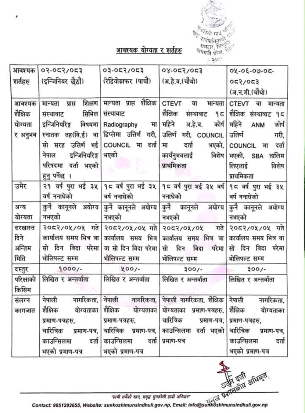 ANM, AHW, Radiographer, Engineer Full Time Sindhuli Posted 4 months ago Applications have closed Website Sunkoshi Gaunpalika JOB OPPORTUNITY Tagged as: Sindhuli