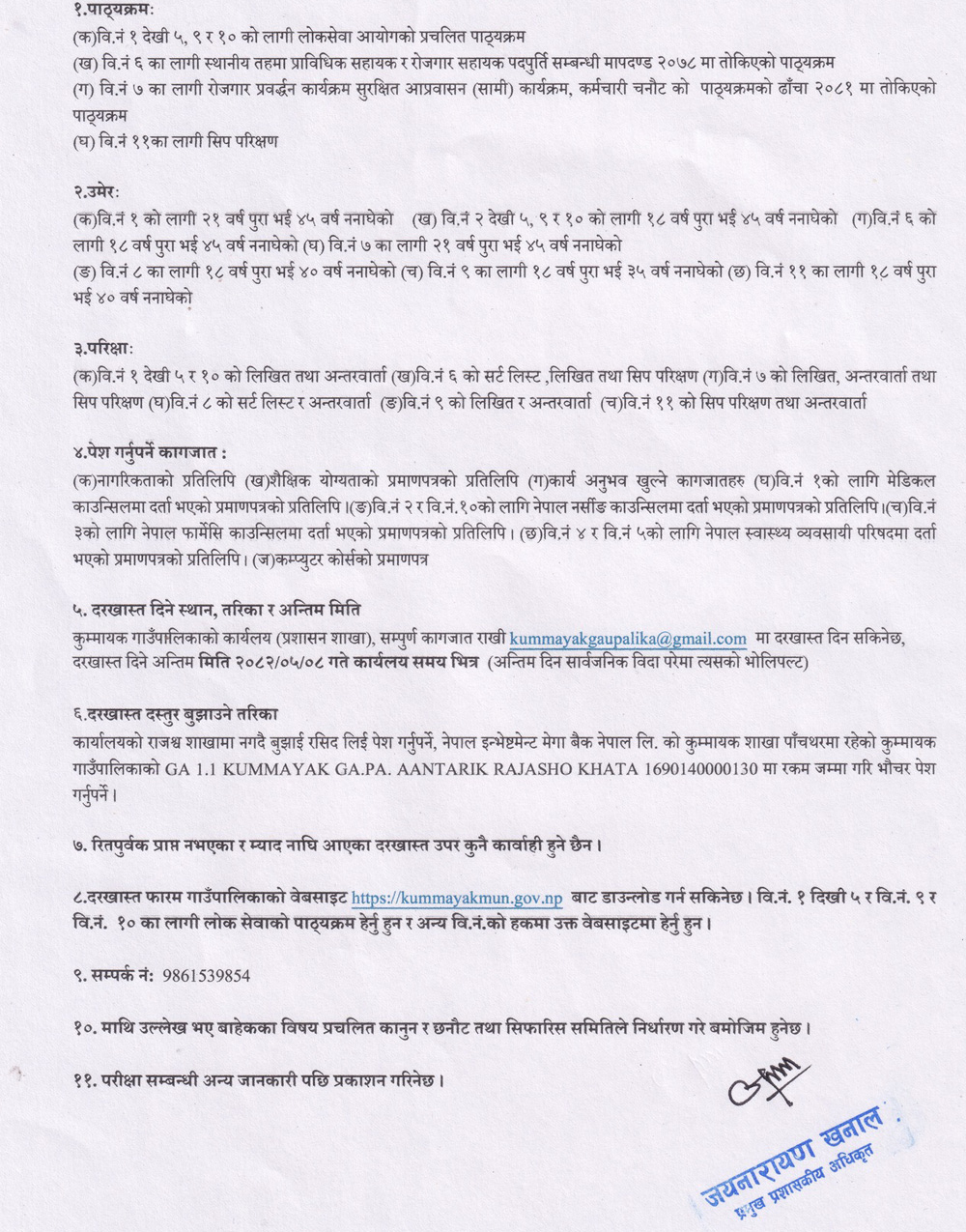 ANM, Amin, Field Assistant, Psychosocial Counselor, Technical Assistant, Lab Technician, Radiographer, Pharmacy Assistant, Staff Nurse, Medical Officer Full Time Panchthar Posted 4 months ago Applications have closed Website kummayak Gaunpalika JOB OPPORTUNITY Tagged as: Panchthar