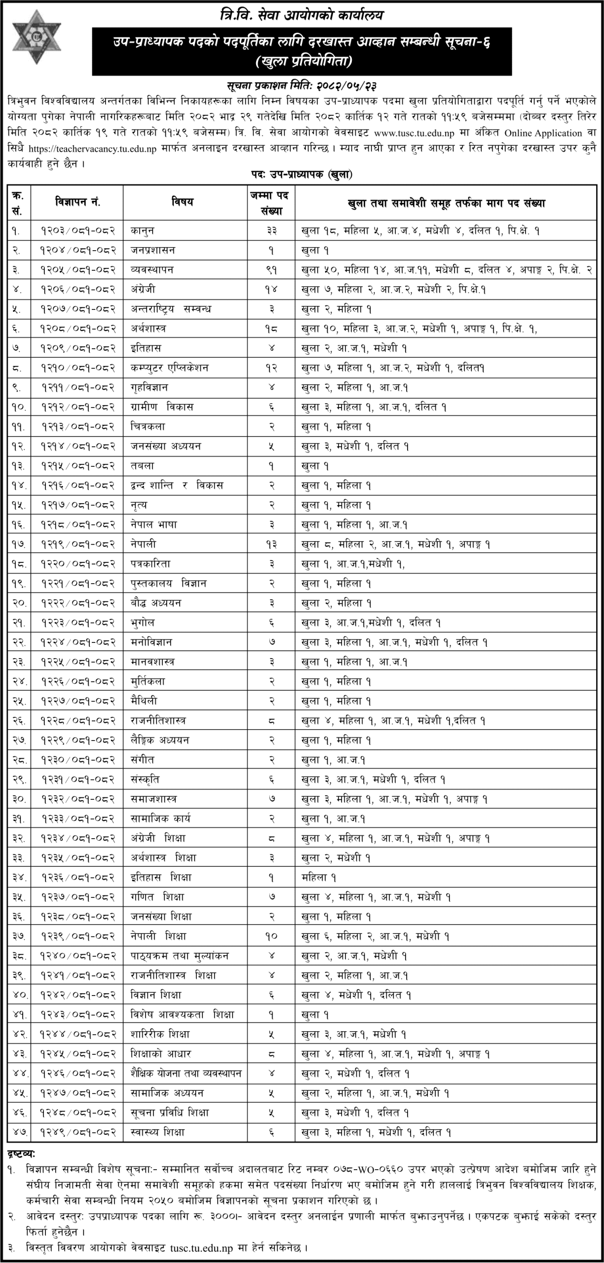 Assistant Professor Full Time Kathmandu Posted 3 months ago Website Tribhuvan University Service Commission JOB OPPORTUNITY Tagged as: Kathmandu