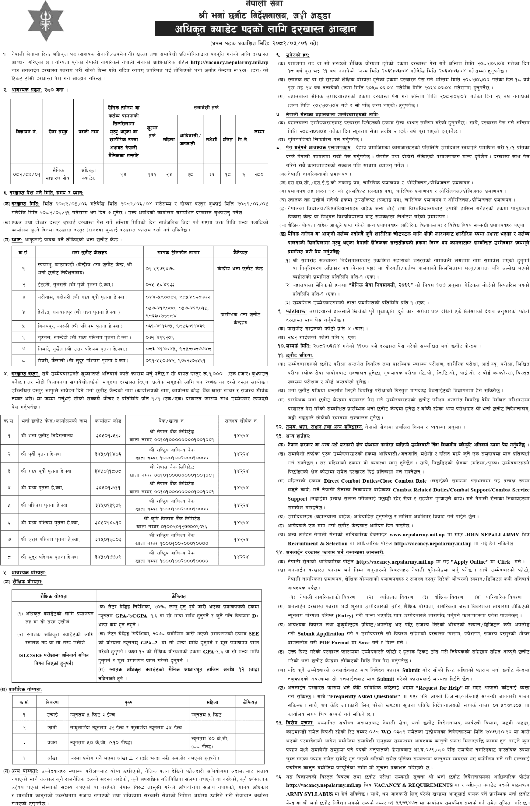 Job in Nepal Army – Officer Cadet – 280 Vacancies Full Time Anywhere Posted 3 months ago Website Nepal Army JOB OPPORTUNITY