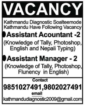 Kathmandu Diagnostic Soalteemode Kathmandu Have Following Vacancy