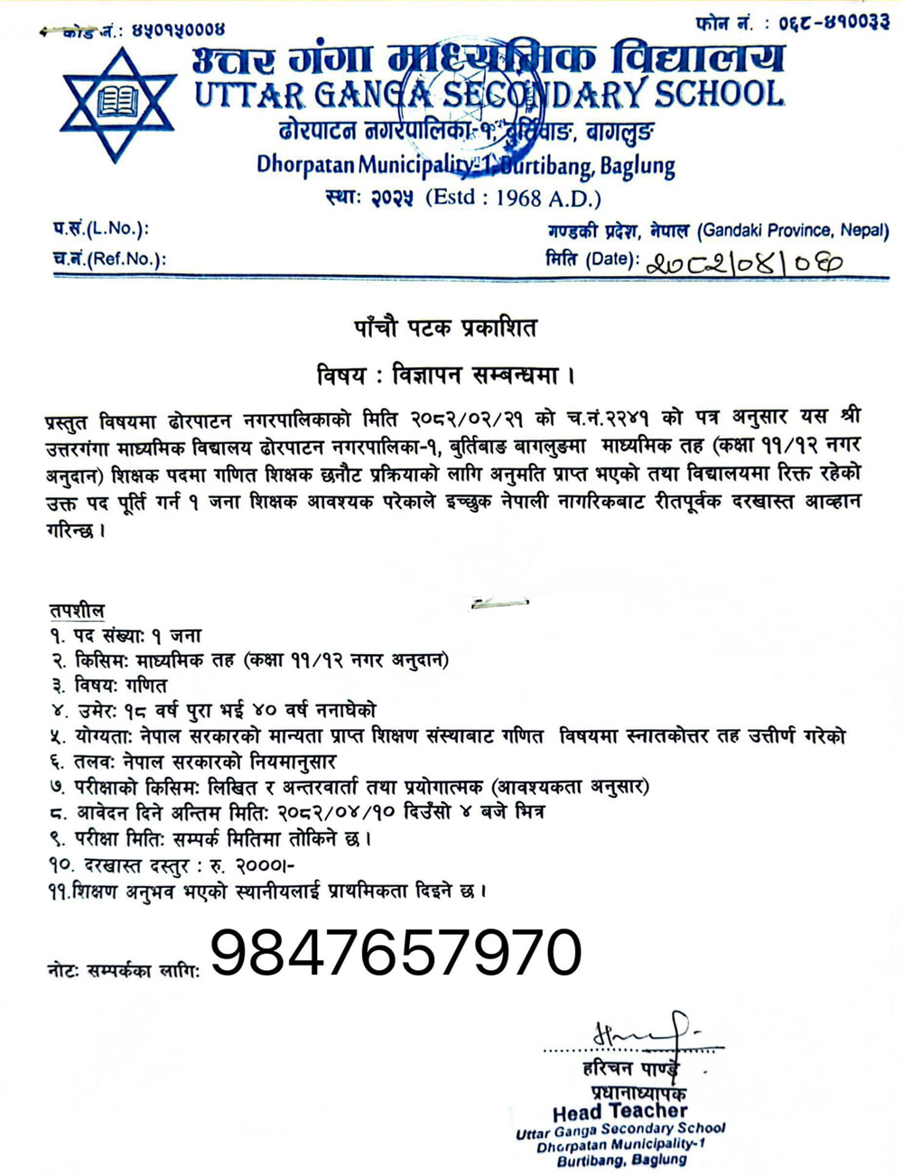 Phone No: 9847657970