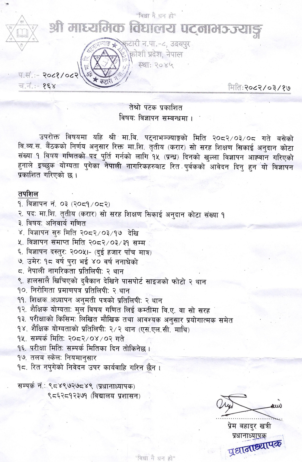 Math Teacher Full Time Udayapur Posted 5 months ago Applications have closed Shree Madhyamik Vidyalaya JOB OPPORTUNITY Tagged as: Udayapur