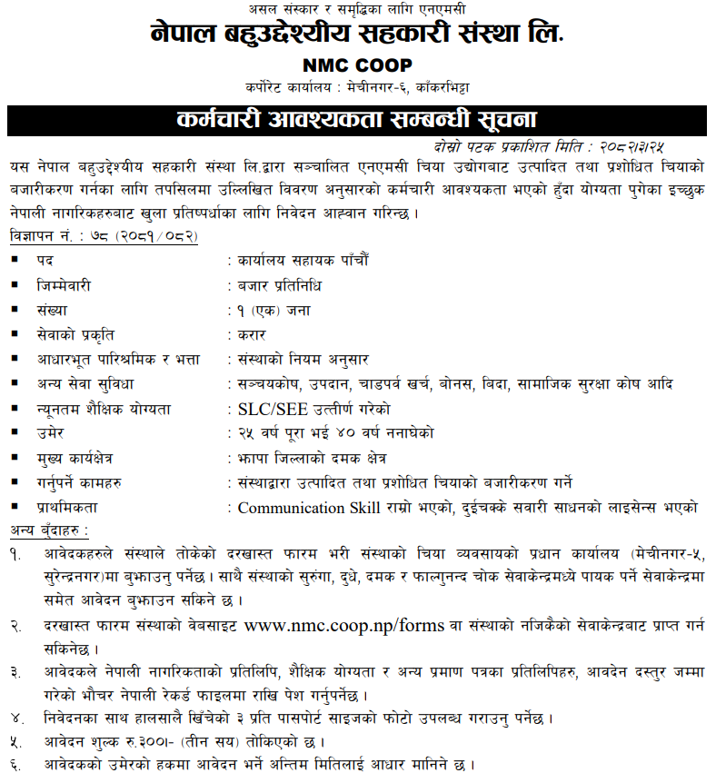 Office Assistant Full Time Jhapa Posted 5 months ago Applications have closed Website Nepal Multipurpose Cooperative Society Limited JOB OPPORTUNITY