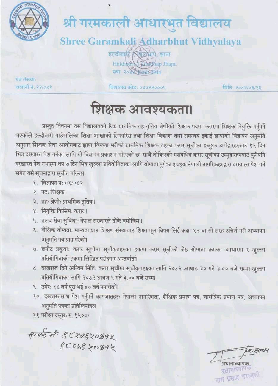Shree Garamkali Adharbhut Vidhyalaya