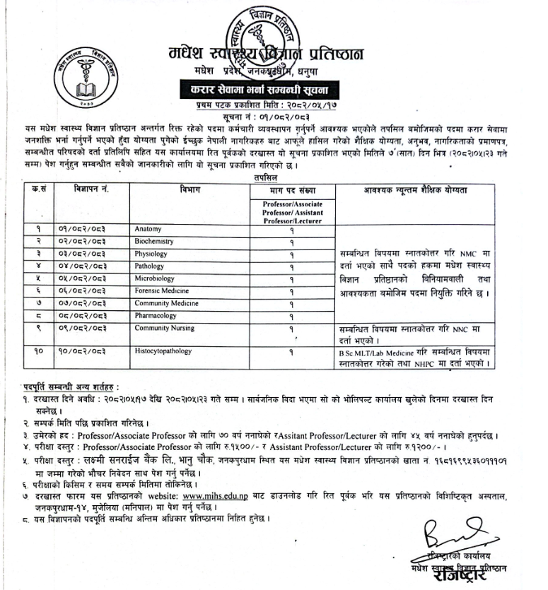 Professor/Associate Professor/Assistant Professor/Lecturer Full Time Dhanusha Posted 3 months ago Applications have closed Website Madhesh Institute of Health Sciences JOB OPPORTUNITY Tagged as: Dhanusha