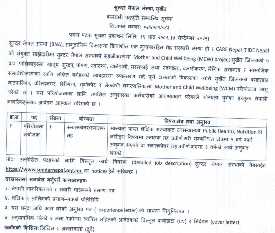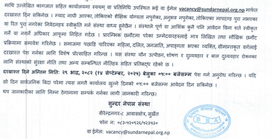 Email: vacancy@sundarnepal.org.np