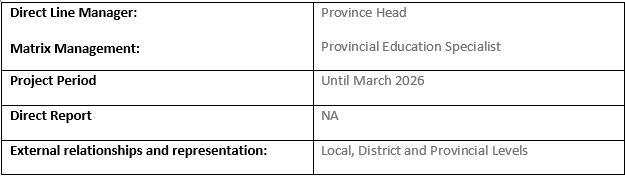 Reports to Direct: Provincial Head
