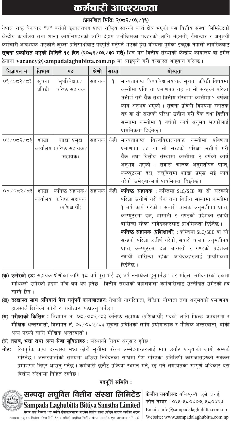 Email: vacancy@sampadalaghubitta.com.np